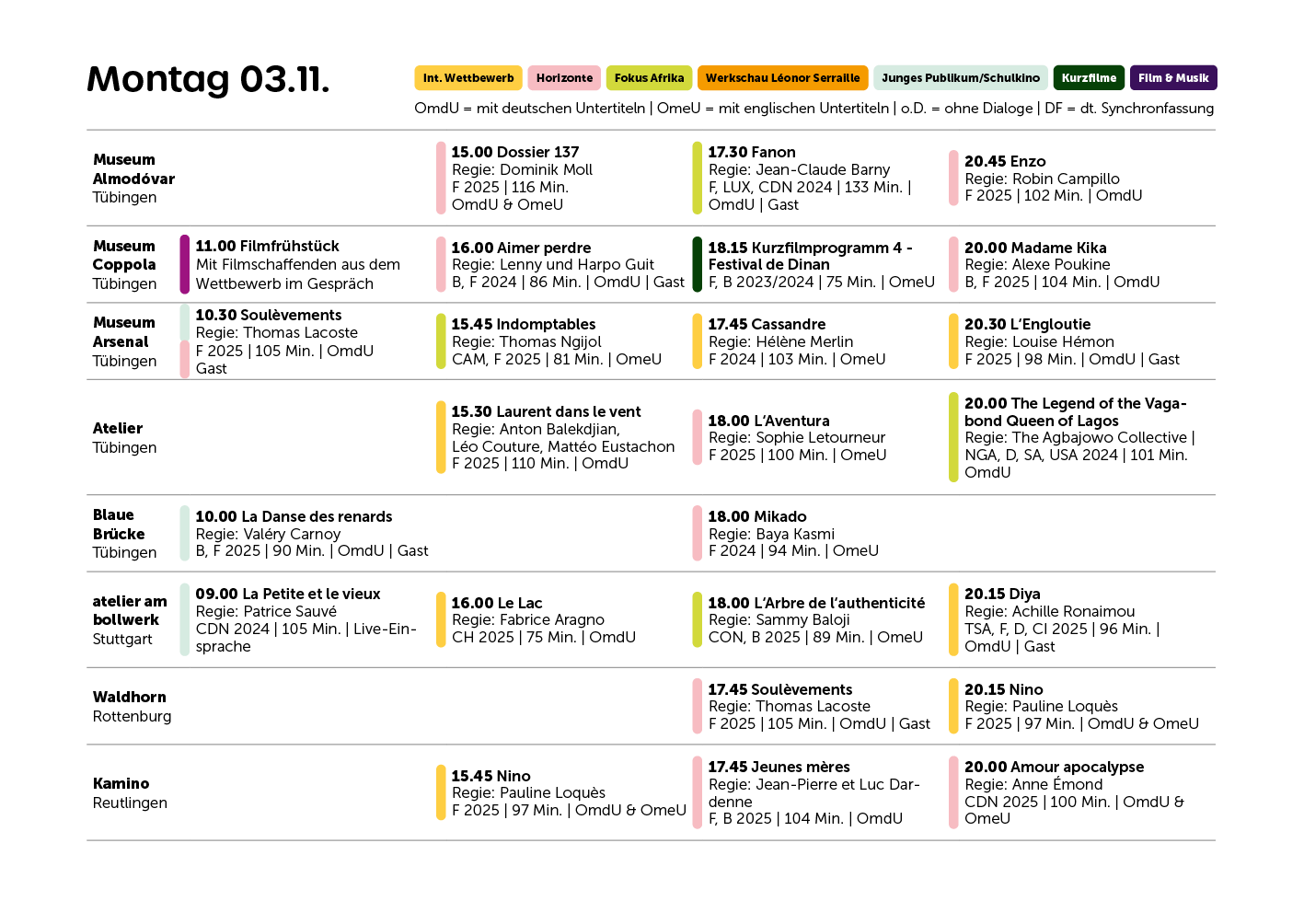 • Alle Filme | Tous les films